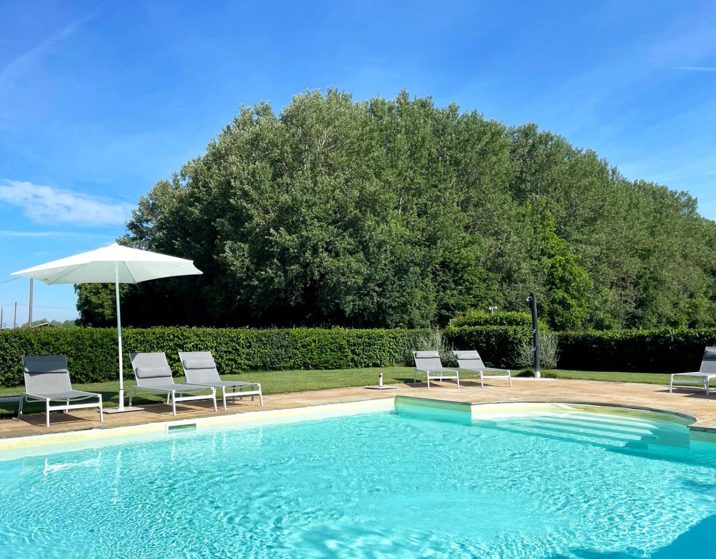 Palazzo Minelli offre una piscina esterna stagionale e propone alloggi a Sala Bolognese con WiFi gratuito e parcheggio privato gratuito.